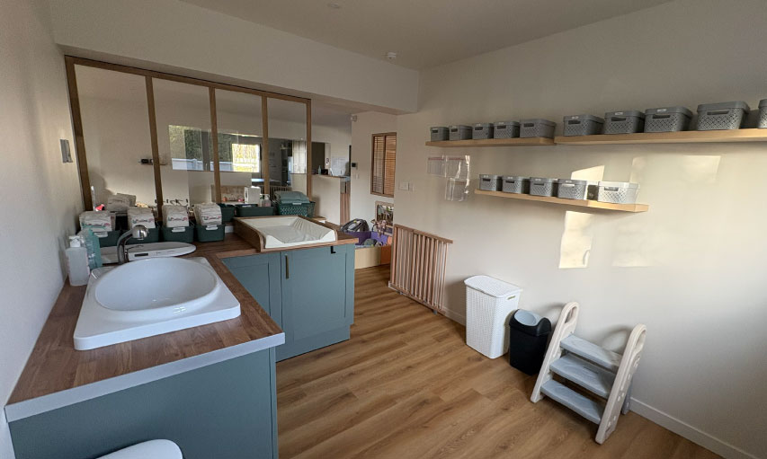 Notre micro-crèche dispose d’espaces pensés pour favoriser l’apprentissage par le jeu :